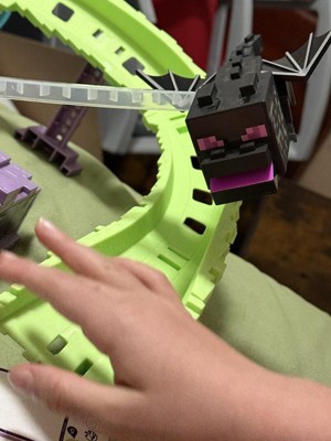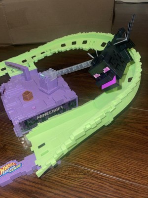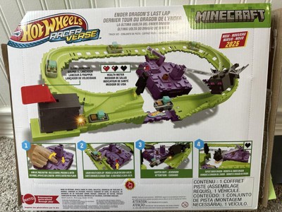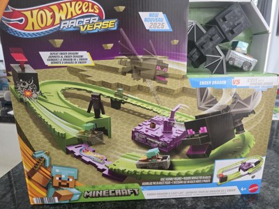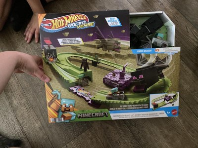 [This review was collected as part of a promotion.] This Minecraft racerverse track is too cool! My 6 year old loves Minecraft and hot wheels, so it’s a great combo! It comes with a little Steve car. It also comes with an ender dragon that flies around and you have to make it around the track so many times to knock the dragon over. It’s really fun. He put it together by himself and it does not require batteries which I really like. Definitely recommend!