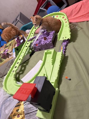[This review was collected as part of a promotion.] “Best toy ever” my son screamed after his first play. It took us no more than 10 minutes to setup. My son and I went through every step, it was all very clear and the pictures are very helpful. I can say the letters seem to be camouflaged into the color which gave us a small set back while building. The concept is simple and versatile. Every turn around is different and filled with a surprise outcome. I love the minimal accessories that come with this set, it makes it efficient to keep together while playing and to put away. It captures the essence of the game. The Hot wheels track keeps my child thrilled. It’s a toy he will show off to his friends.