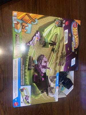 [This review was collected as part of a promotion.] The Hot Wheel Racer vs Minecraft is less desirable than expected. Packaging and set-up is simple and efficient. Each piece is labeled and only snaps together where it belongs, which makes it easy to recognize a mistake. The concept of the toy is to launch the car around the track to attack and defeat the moving dragon. There is a learning curve to launching the car, but when done correctly, it goes go around the track. The amount of force to launch the car is more than you would expect and without strong force in the beginning, the car doesn't make it around the track. The entertainment was short lived because of short comings of the set-up, but also better suited for an older child who can launch the car forcefully. Overall the materials are high quality, but the Hot Wheels Racer is a dud.