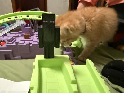 [This review was collected as part of a promotion.] This is an awesome toy! My kids love Hot Wheels and Minecraft, so this is a great combo. I love that it doesn’t take batteries. It’s all kid powered. There’s so many cool little features like the enderdragon spinning, and if you time it right, you can slay the dragon. If you don’t time it right, the dragon eats you. My kids, husband, and even our cats like it.