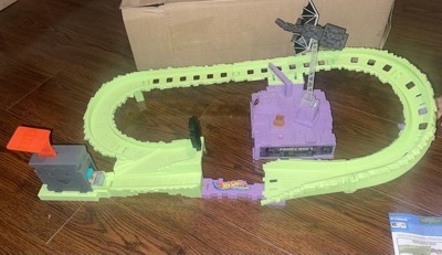 [This review was collected as part of a promotion.] Perfect for any Minecraft fan! The track is pretty simple and the launcher is manual and does not require batteries. It’s fun to launch the cart while the dragon spins around. The wind up the gear box powers the swinging Enderdragon while Diamond Armor Steve races past in his Minecart! Not only is it fun but it helps kids practice their problem-solving skills by designing and building the track which encourages creativity.