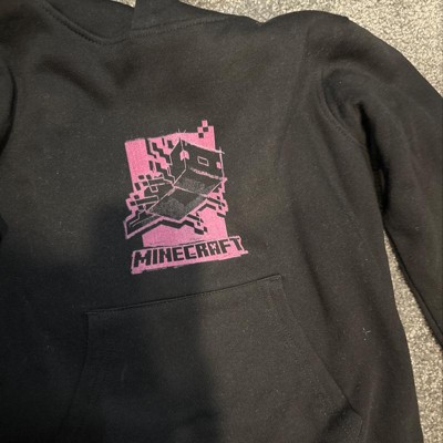 Ignite the adventurous spirit of young Minecraft fans with this youth black long sleeve hooded sweatshirt. This sweatshirt features a monochrome image of an axolotl on a vibrant purple background, complemented by black letters spelling out the game's logo. Immerse them in the world of Minecraft with this cozy and stylish hoodie. Made from sustainably and fairly grown USA cotton and polyester, it offers a soft and eco-friendly feel. The double-lined hood provides extra warmth and comfort during exciting Minecraft quests. Officially licensed, this Minecraft hoodie guarantees an authentic and high-quality product. For easy care, machine wash it on cold with like colors and tumble dry on low heat.