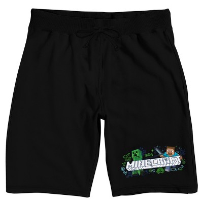 Minecraft We Humbly Seek Gold Adult Black Lounge Shorts-Large
