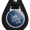 - QUALITY MATERIAL: Our durable round keychain is crafted from leather with a glossy resin-topped emblem featured design shown on one side. Approximately 1.5" (3.8cm) x 2.5" (6.4cm) in overall size, emblem is 1" (2.5cm)..
