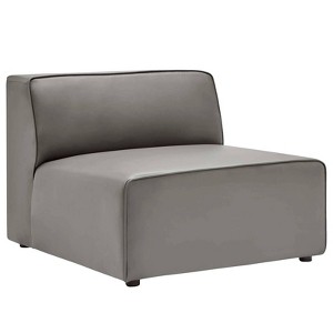 Kick back and relax with the Mingle Vegan Leather Armless Chair. Designed to wash away the hindrances that obstruct visual space, Mingle comes expansively designed with generous seating and dense foam padding that allows for just the right amount of giving. Mingle easily positions according to the needs of the moment and features rich vegan leather upholstery with elegant piping and plastic legs for steady support. Host animated living or lounge room get-togethers with a modular sectional seating assortment perfect for contemporary modern décors.