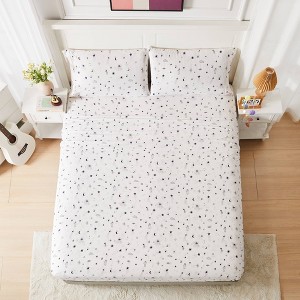 I am in love with these sheets! The celestial print in white and purple is absolutely stunning—fun, dreamy, and adds such a magical vibe to the bedroom. But the real standout is how incredibly soft they feel. I’ve had other soft sheets before, but these are next-level comfort. What truly blew me away, though, was how easy they are to put on. I have a deep mattress, and usually that means a battle with the fitted sheet—but not with these! The corners stretch beautifully and make it effortless to get everything in place. No tugging, no frustration—just smooth, easy bed-making. These are officially my favorite sheets. I’ll definitely be buying another set!