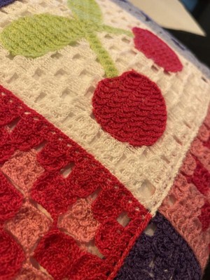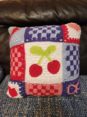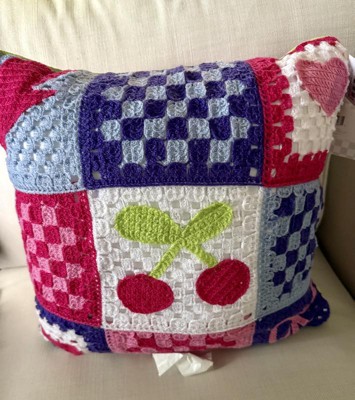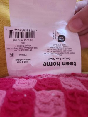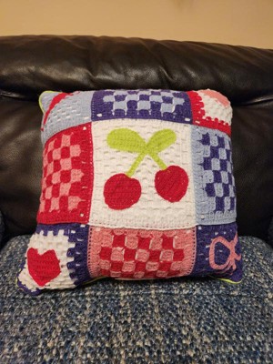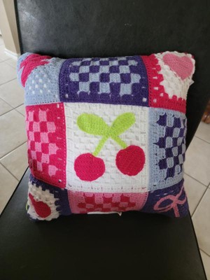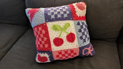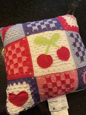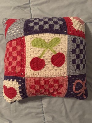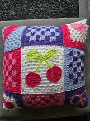 This pillow is so on trend. Y2K meets 2025 and I'm here for it. The colors are bright and it feels well made. The lightning bolt, cherries, hearts and bow really pop against the crochet. Overall, it's a fun pillow.