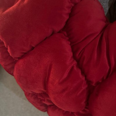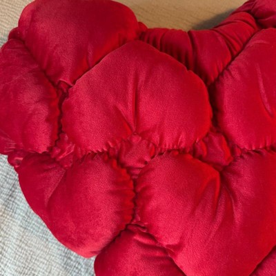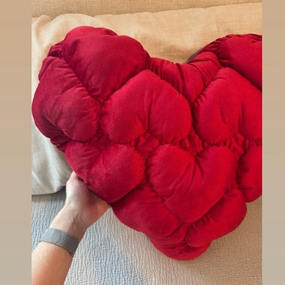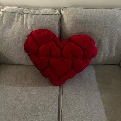 [This review was collected as part of a promotion.] This accent pillow is huge but it's absolutely gorgeous! It's a rich, vibrant rose red. If you're looking for a piece to really pop in the room, this is it for sure. I love that the big heart shape is made up of smaller quilted style hearts. This is great as seasonal Valentine's Day decor but it's so luxurious you can keep it on display year round as a statement piece.