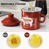 [Safe Materials] - Both the high temperature resistant enamel grease container, and the removable strainer made of food grade 304 stainless steel prevent corrosion and breakage. and not easily deformed. The spoon can easily scrape away solidified grease and can also be used for spreading and stirring ingredients.