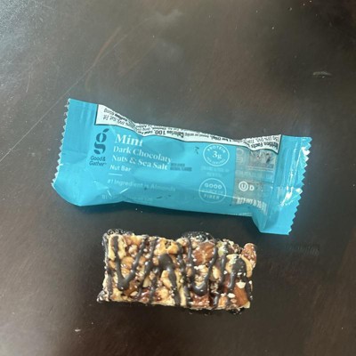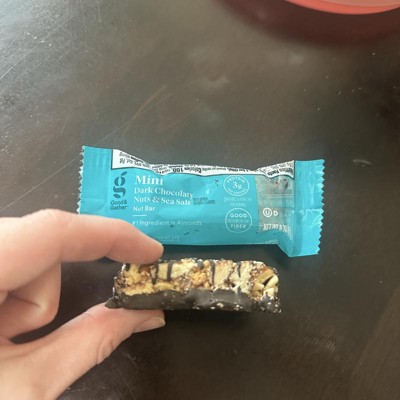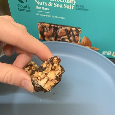 [This review was collected as part of a promotion.] These are the mini dark chocolaty nuts & sea salt - nut bars from good&gather. There are 10 mini bars, they are gluten free and non GMO. The first two ingredients are almonds and peanuts which means that these bars are full of nuts which I love. The drizzle of dark chocolate is just enough and the sea salt is not too much so these are the perfect sweet and salty balance. These are small so if you are looking for a little sweet bite they are the perfect sweet treat. I received an incentive to write this review.