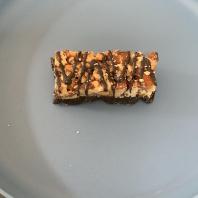 [This review was collected as part of a promotion.] Wow these bars are a full on dessert treat. As you can see these mini bars are what I would say is a three bite bar. They are coated on the underside with chocolate and on the top they have the drizzle. They definitely have the sea salt in them to enhance the flavor. The bars have nuts as the first couple ingredients which is important to me that they not just be a chocolate bar. Are these the healthiest bar around? No, but they have a lot of good in them and are really delicious at a good price point. I received an incentive to write this review.