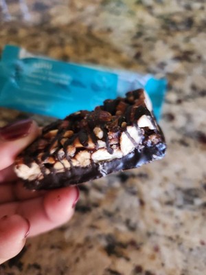 Very chewy, mini chocolate, nuts, and sea salt bar