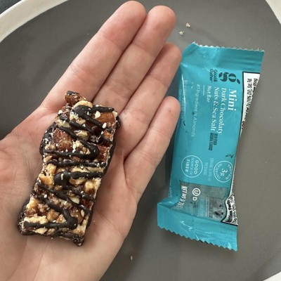 [This review was collected as part of a promotion.] These are the mini dark chocolate nuts and sea salt nut bars. The size of these mini bars is perfect for a small snack, just enough to not be sick of it by the end. The chocolate drizzle is a great balance of ratio to nuts. There’s a great crunch and the sea salt is my favorite for a salty snack. The price is great for ten mini bars and I would purchase these again. I like these for throwing in my gym bag to have on the go. I received an incentive to write this review.