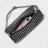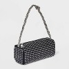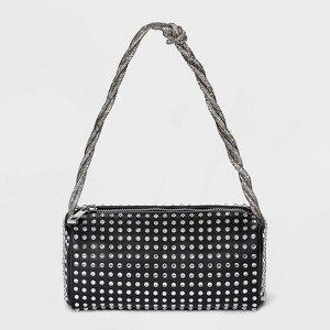 Add a hint of sparkle to your going-out look with this Mini Embellished Boxy Barrel Bag from A New Day™. Compact yet eye-catching, this boxy barrel bag features a woven polyurethane exterior adorned with subtle embellishments that elevate any look. The zipper closure keeps your essentials secured, while the knotted embellished shoulder strap offers easy hands-free carrying.
