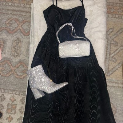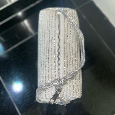 [This review was collected as part of a promotion.] This rhinestone small bag is beautifully made and of quality. I think the price is fair for the quality and I really like the size. It’s small but can fit all of your necessities like chapstick, credit cards, cell phone and more. I wish it had a pocket for the small items but I like the silver knotted handle and the zipper is easy to open and close