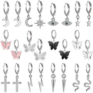 - Hoop Earrings Sets - Small dangle hoop earrings with multiple charms, silver star and moon, butterfly, evil eye, cone spike, snake, cross, lightning, make you more charming and elegance