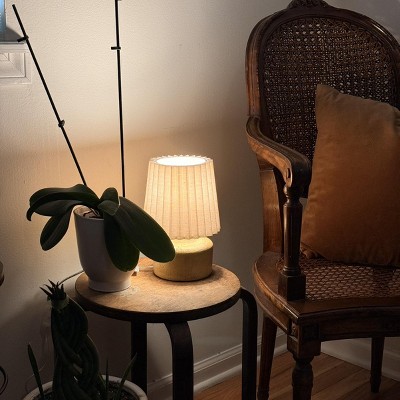 [This review was collected as part of a promotion.] This mini lamp is exactly what I was looking for. It’s small but well-made in the neutral wood tone looks more expensive than it is. This is perfect for a nightstand desk or shelf where you want a soft cozy light without taking up a lot of space. It works great in our bathroom. Easy to use and set up.