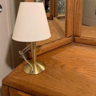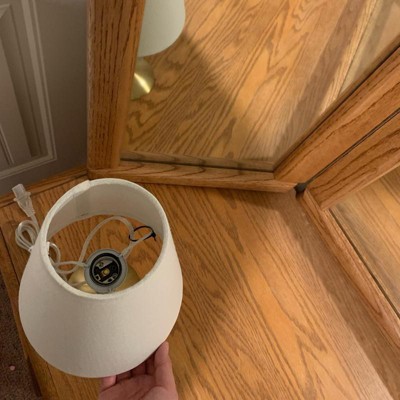 I purchased this lamp to go in the nursery. I like the small size and the metal base to the lamp, however, the metal pull chain clinks loudly on the side of the lamp every time you pull the chain, which is not great for a nursery. Also, this lamp is not high-quality at all. The lampshade was already coming apart out of the box and the place where the cord comes out of the base of the lamp has a big space in it which looks like it’s coming out as well. It also takes about three or four pulls on the chain to get the light to go on and off as it is not very responsive. I had high hopes for this lamp, but sadly it’s just not going to work for me.