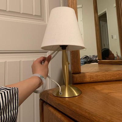 This lamp is the perfect size for a bedside table. It doesn't take up much space but still provides just the right amount of light. I love the little pull chain to turn it on and off— it's a simple detail, but very convenient. The brass finish looks great and adds a nice touch to the room. Overall, it's a great lamp for a nightstand.