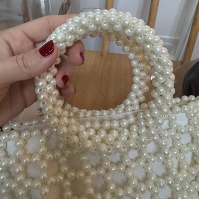 [This review was collected as part of a promotion.] This bag is so cute in person. The quality of the beading is far better than i expected for a bag at this price point. I love the handle with the additional clusters of pearl beading, it is extremely sturdy but comfortable to hold. The inside of the bag is roomy but I definitely wish there was some sort of pocket