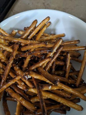 Wanted a not sugary snack for keeping at my desk. super dissapointed to open the bag and find that all but a few pretzels were burnt. They tasted burnt, too.