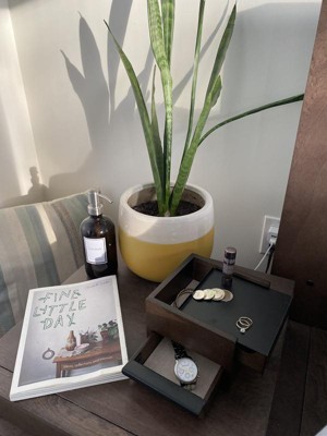 Introducing Mini STOWIT by Umbra. No more messy jewelry drawer - with Mini STOWIT jewelry box, you get stylish storage and a functional organizer in one. Use Mini STOWIT to keep all your favorite jewelry pieces in one place, making them easy to access. Multiple hidden compartments of various sizes allow you to store your rings, earrings, bracelets, watches, necklaces and other accessories in different configurations depending on what works best for you. Each drawer features a linen pad to keep your jewelry from shifting around or getting damaged. The simple, modern design of Mini STOWIT is an attractive addition to your dresser, nightstand, desk, or wherever you choose to put it. Plus, the protective rubber feet keep it securely in place and ensure whichever surface you place it on won’t get scratched by the wood and metal design. Alternatively, Mini STOWIT can also be used as a keepsake box, for storing small valuables and other trinkets from your adventures, or as a drawer organizer in your desk or nightstand. About Umbra: A global product design company providing original, modern, casual, and functional design for the home. From the designer Sung wook Park: I was inspired by product packaging that has hidden storage inside of the box.