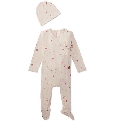 A cozy and comfortable 100% pima cotton onesie features a lightweight design, long sleeves, footed legs, and an embroidered rocking horse detail. Dress them up with a matching beanie and blanket to complete the set.