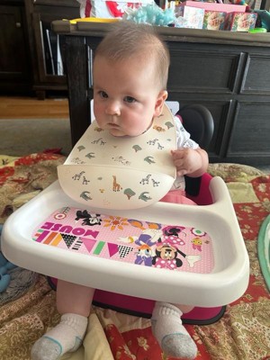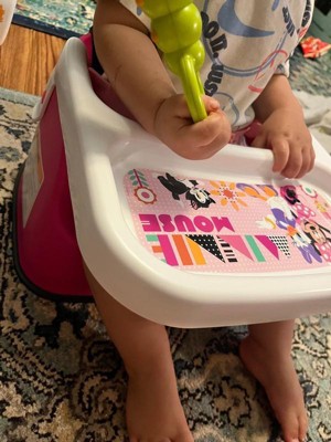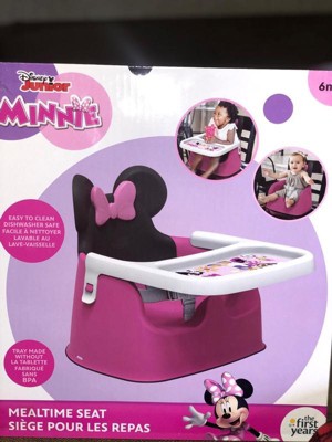 Bring a bit of Disney magic to munch-time or play time with the Minnie Mouse Mealtime Booster Seat from The First Years! Kids will love eating with Minnie in this contoured and comfortable seat that gives them the perfect boost. As a 2-in-1 chair, it can be used either with the included tray for a baby, or with the tray removed for toddlers to give them a seat right at the table. This Minnie feeding booster is built to travel too with a lightweight and portable design that's easy to take on the go. Wherever you go, the seat helps keep kids steady with a 3-point safety harness and non-slip, non-scratch rubber feet. Mealtimes getting messy? No worries. The smooth seat surface won't catch crumbs and wipes down easily. The tray is dishwasher safe too!