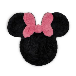 A: The rug has a novelty shape, specifically designed to resemble Minnie Mouse.