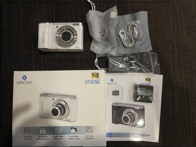 Minolta 56 Mega Pixels Dual Lens Point & Shoot Digital Camera with 5X Optical Zoom & 5K Ultra HD Video, White