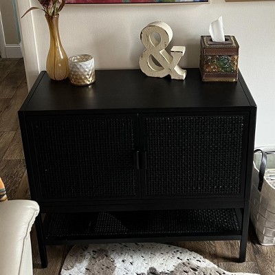 Minsmere 2 Door Cabinet - Black - Threshold™: Veneer Surface, Wood Frame, Fixed Shelves, 34"W x 29.2"H