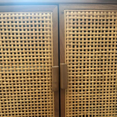 A: It has woven mesh panel doors that provide a light and airy feel.