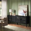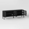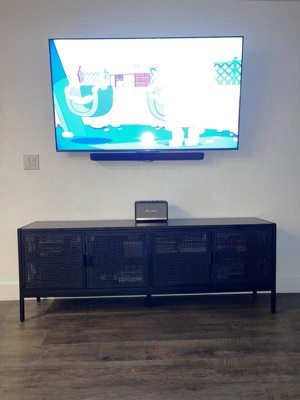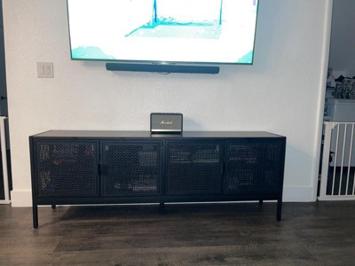 A: The TV stand includes two double-door cabinets for ample storage.