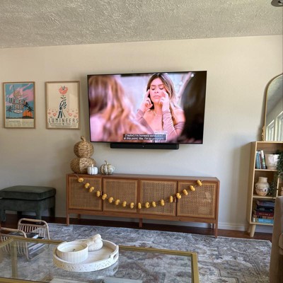 A: The TV stand features a breezy, boho-chic aesthetic that enhances any living space.