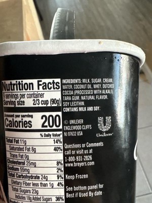 This "ice cream" is GROSS!!! Years ago Breyer used to be really good! Ice cream should have about 3 to 4 ingredients....cream, sugar, maybe eggs, flavoring (fruit/chocolate/vanilla??) but this is disgusting! but COCONUT OIL added ??? yuck. This waxed my tongue with a really bad taste. Goodbye Breyers, going back to my mother's homemade recipes and when Hagen Daas in Fort Lee was divine. This Breyers is just AWFUL!!!!