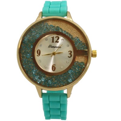 Product Name: MINT FLOATING COLORFUL STONES SILICONE STRAP WATCH