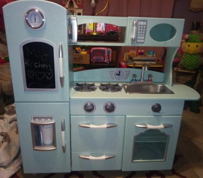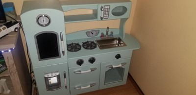 [This review was collected as part of a promotion.] The kitchen looks adorable and the minty color is perfect. Got it for in-home daycare and all kids love it. Little bit smaller than expected but pretty sturdy. Overall pretty happy with it. Would recommend
