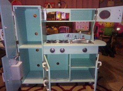 [This review was collected as part of a promotion.] This is so wonderful that I don't even know where to begin! It came packaged well;everything was rapped well,with the screws,dowels, bolts,etc, packaged in a separate package within the box. My husband assembled it and had no problems at all. We LOVE the mint green color. It is so nice looking that we placed it in our kitchen. Our kitchen is a large eat-in kitchen,so we have lots of room in there,and we placed this in there so our daughters could 'cook' when we cook.They love the blackboard,phone,thermometer,ice maker,clock, fridge, stove, microwave,and most of all, the sink. I fill it with a bit of water so they can 'do dishes'. Technology is great,but there is nothing like creative,hands-on playtime,especially playtime that engages children in lots of conversation and imagination. This is a toy they will enjoy for years,and one they can pass down to their own children,one day.
