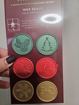 Minted 6ct Iconic Holiday Self Adhesive Wax Seals Gold/Green/Red