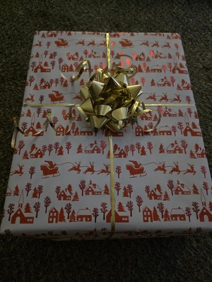 Minted Foil Toile Village Luxury Gift Wrapping Paper Red/Cream - 1 of 3