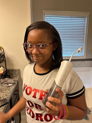 [This review was collected as part of a promotion.] I have a few things i can say about this - the first thing is I think it could be great with a few tweaks. The box gave off "as seen on TV" vibes and made it feel cheap, but how it was packaged inside the box was nice. The charging cord will always require me to find a plug due to it just coming with the USB cord and not something that plugs in the socket. The unit has 3 settings. I prefer the middle one, but the plastic piece that you put around your teeth is hard plastic, which I don't like. When I turned it on, it immediately started to spray, so I got water all over. I would love a sensor or something that gives me the opportunity to not spray water everywhere when it is on and not in my mouth. I also had a similar experience when I was done. I took it out of my mouth, and water sprayed all over. That time, I should have remembered to turn it off, but I didn't. If the mouthpiece wasn't hard plastic and there was a sensor, I think it could be really good. But for now, I will grab normal string floss.I received this from the influenster in exchange for an honest review.