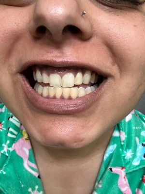 [This review was collected as part of a promotion.] I think that this is a great idea, conceptually. But the execution is not promising. As you can see, brushing with this product for 2 min twice a day for 5 days made no discernible difference in the color of my teeth. Some of that may have to do with how finicky the dispenser is. The instructions say to take care to have a 50/50 distribution of the clear and blue product onto your toothbrush. But half the time, only one or the other would dispense and i would have to waste so much product trying to get the other to come out and create the correct ratio. On a positive note, it tasted fine and didn’t cause any sensitivity. I would not purchase this nor recommend it.