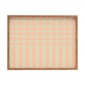 Mirimo Peach and Pistache Gingham Rectangular Bamboo Tray - Deny Designs