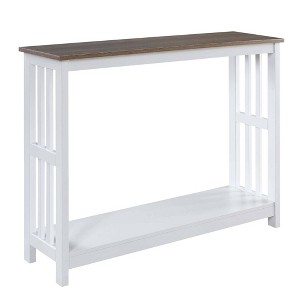 Update your home décor with the Mission Console Table with Shelf by Brighton Home. This piece displays a transitional and contemporary design that will fit well into any current room ensemble. Crafted from MDF and sturdy particleboard, this piece is built for durability. Utilize the spacious tabletop for everyday necessities and fill the bottom shelf with your favorite collectibles. Versatile in its design, this piece can be placed in your living room, entryway, den, or home office. Pair with other coordinating pieces from the Mission Collection by Brighton Home, each sold separately.