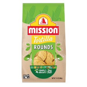 Whether you share them with friends or family, the great taste and crunchy texture of Mission Rounds Tortilla Chips are sure to be a hit with any crowd. Made with only four simple ingredients, including a dash of sea salt, our tortilla rounds make for a satisfying meal. Our tortilla chips are also certified gluten-free and kosher, and they are made without any artificial flavors, artificial colors, or preservatives. The round shape and sturdy texture of Mission Rounds Tortilla Chips make them perfect for nachos. We recommend loading them up with bacon, jalapeños, and a blend of cheeses for a tasty spin on the classic nacho platter that everyone will love. Includes one 11 oz. bag of Mission Rounds Tortilla Chips.