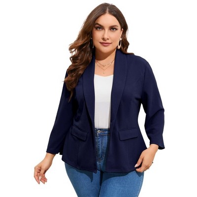 YESFASHION Women Plus Size Casual Blazer Open Front Long Sleeve Work Office Cardigan Jackets - 1 of 3