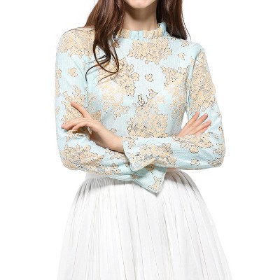 Feature: Lantern sleeves, flared hem, square neck, frill trim, shirred blouse top for women