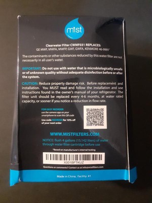 [This review was collected as part of a promotion.] Water filters are expensive. I get it. We want quality, but we don’t generally want to pay for it, especially when you have to replace them every 3-6 months if you have hard water and use your water dispenser/ice maker a lot… like we do. We have a GE Adora side-by-side that uses the MWF water filters. The GE OEM filters are ridiculously expensive and don’t seem to produce any better results that certain other filters I’ve tried… with the understanding that not all cost-effective filters are built the same. Some are the same as GE OEM filters. Others are junk. I’m thrifty and have tried many. The Mist MWF replacement for GE MWF smartwater, MWFA, MWFP, GWF, GWFA, Kenmore 9991,46-9991, 469991 refrigerator filter seems on par with the “okay” sets of filters that I tend to purchase based on my specific water filtration needs. My experience follows. YMMV. Pros: In the box, you get instructions, reminder stickers, and the filter itself. The stickers are a nice touch. Some use them to remind them when to replace the filter. My fridge has a built-in filter “monitor” that generally indicates when the filter needs replaced. We have very hard water. I use any included stickers to note when I installed the filter, so I know generally when I install it and whether I’m getting my money’s worth… some filters last longer than others. The filter was direct fit. Easy to install. Remove old filter. Replace with the Mist filter, ensuring to twist and lock in place. Run a gallon of water through to clear out filtration sediment (carbon) and flood the filter chamber to remove air. Expect blowback from your water dispenser when doing this. I use a deep pitcher to lessen spray, as blowback is normal for all new filters. Some have less blowback than others; but, blowback is normal. The filter compartment has air in it that the water needs to push out… again, contrary to other reviews that said they didn’t understand why their lines were surging at install and spray was occuring, this is completely normal and expected. After purging the water line of air and ensuring a solid stream of water, I gave the water a taste. And, it was fine. No, it’s not, “close your eyes and you’re whisked away to a pristine tropical island” wonderful. No filter I ever used was. But, I don’t taste chlorine or any of the other stuff that I know is in our borough’s tap water… which works well for me and my family. Of note, after a month’s use, I still have a steady stream of water that allows enough water pressure to fill my ice maker tray and ensure a good stream from my water dispenser -- just as good as any other filter I used, including GE’s. Cons: I can’t say exactly why, but this filter seems lighter than another “cost effective” filter I typically use. There could be a number of reasons for this that I won’t speculate on, as I’m not dissecting my new filter to find out. Based on the product site pics, it almost seems as if there isn’t the same amount of filtration material inside the filter housing. But, I can’t/am not willing to cut open the filter body to confirm this. FWIW, the filter body and build seem sufficient. It just has slightly less “heft” compared to other filters I used. General Considerations: There are many claims in the consumer filtration world about NFS/ANSI certs, etc. The NSF ensures that “an independent organization reviews a product or system to comply with specific standards for safety, quality, sustainability or performance.” The Mist filter claims to be tested and NSF/ANSI certified to Standard 42 -- confirmed on the NSF site. Others claim to be NSF 372 certified. Yet others claim to be NSF/ANSI 42/53 certified. The more certs, the more the filter does… and the generally-more expensive the filter is. In addition to many other NSF/ANSI filtration ratings, here’s the deal, (according to the NSF site, which I highly recommend you visit before making any filtration purchase, as you can research a company’s current cert standing before buying), NSF/ANSI 42 certified means that the filter meets the minimum requirements for a system designed to reduce specific "aesthetic" or "non-health-related" contaminants -- chlorine, taste and odor, chloramine, particulate, iron, manganese, zinc, and total dissolved solids. That is, the carbon filter makes water taste, smell, and look better. NSF/ANSI 53 certified means that the filter meets the minimum requirements for a system designed to reduce specific "health-related" contaminants (lead, Cryptosporidium, VOCs, chromium, etc.) Here, the filter does a little more work and clears out stuff that your water might or might not have to begin with to make your water healthier to drink. NSF/ANSI 372 means that the filter itself is made with less than .25% lead by weight. Less lead in the unit means less likelihood of lead getting in your water/going in a landfill. So, what are you getting with the Mist unit? Like most other “cost-effective” filters, you’re getting a carbon filter that removes bad taste, odor, and other water “floaties” that you might or might not experience/see in your home’s water. NSF/ANSI 53 and higher filters require better internal components; so, understandably, you’ll generally pay more. FWIW, I would review your municipality’s water reports and have independent reports run by state certified laboratories on your house water (not by a company trying to sell you a filtration system). My water is in good standing (at least in “acceptable limits” according to all reports, that break down very clearly what is found in our water, at the source and after treatment plant filtration, and based on tests run on the house water when we first moved in a few years ago). For my purposes, the Mist water filter’s confirmed NSF/ANSI 42 rating and resulting filtration suffices. Worth the purchase? It depends on your filtration