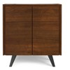 Make a statement with the bold and modern Mitchell Medium Storage Cabinet. Handcrafted from rich walnut veneer and supported by angular metal legs, this 39-inch-wide storage unit is finished in a hand-finished walnut tone and sealed with a protective NC lacquer that highlights the wood's natural texture. Behind two clean-lined doors with concealed pulls, spacious interior compartments include four adjustable shelves, offering versatile storage for everything from barware to office supplies. With its sculptural silhouette and minimalist hardware, this piece adds a refined industrial edge to dining rooms, living areas, or entryways while keeping your essentials neatly organized.