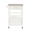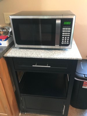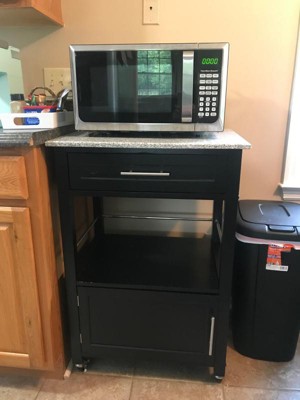 A: Lew, Thank you for your interest in the Mitchell Kitchen Cart. The dimensions of this piece are: Overall Width: 27” Overall Depth: 18” Overall Height: 36” Top Width: 24” Compartment Width: 19-1/4” Compartment Depth: 15” Compartment Height: 11” Drawer Width: 17-1/2” Drawer Depth: 13-1/4” Drawer Height: 3-1/3” Shelf Width: 19.5” Shelf Depth: 16.3/8” Shelf Height: 12-1/4”